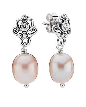 PANDORA Silver Pearl & CZ Drop Earrings